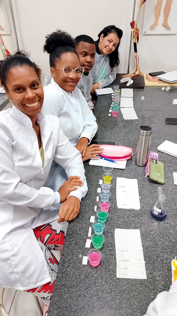 No dia 25 de setembro de 2025, alunos participaram de um experimento prático de Química no curso de Enfermagem que utilizou o repolho roxo como indicador natural de ácido-base. A atividade foi conduzida pelo Prof. Esp. José Francisco Alves dos Santos e proporcionou uma experiência lúdica e científica, mostrando como substâncias presentes no dia a dia podem ser analisadas de forma simples e visual.