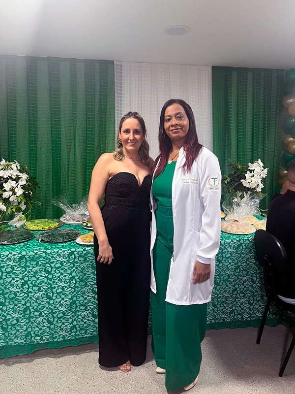 Durante o evento, as colaboradoras Eliete e Mara fizeram questão de parabenizar a Coordenação dos cursos, elogiando o compromisso, a dedicação e o profissionalismo da Profa. Dra. Renata Landeiro. Elas destacaram a forma como a condução pedagógica e o cuidado com os alunos fortalecem a qualidade do ensino e o prestígio da instituição.
