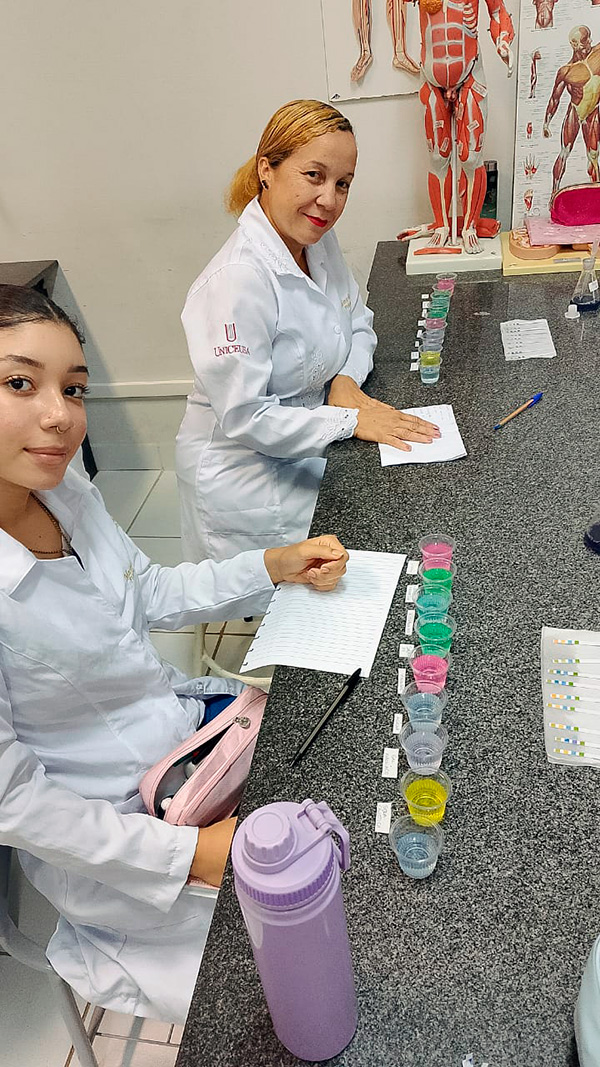 No dia 25 de setembro de 2025, alunos participaram de um experimento prático de Química no curso de Enfermagem que utilizou o repolho roxo como indicador natural de ácido-base. A atividade foi conduzida pelo Prof. Esp. José Francisco Alves dos Santos e proporcionou uma experiência lúdica e científica, mostrando como substâncias presentes no dia a dia podem ser analisadas de forma simples e visual.