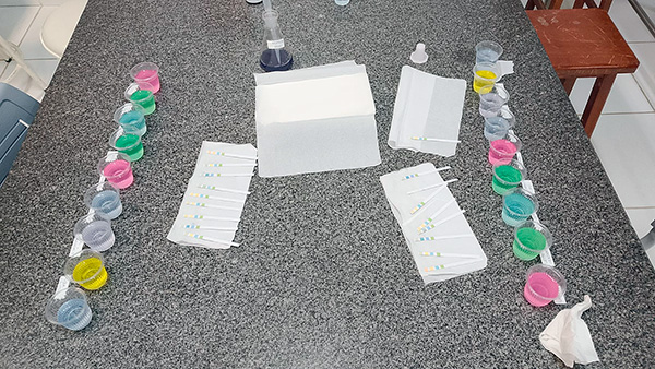 Durante o experimento, foram analisadas diversas amostras cotidianas, como vinagre, suco de limão, leite, fermento químico, pastilha antiácida, sabão em pó, detergente, bicarbonato de sódio, leite de magnésia, shampoo, condicionador, sabonete, açúcar, sal, água de torneira e água sanitária.