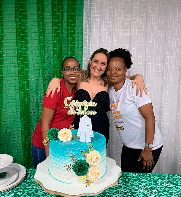 Durante o evento, as colaboradoras Eliete e Mara fizeram questão de parabenizar a Coordenação dos cursos, elogiando o compromisso, a dedicação e o profissionalismo da Profa. Dra. Renata Landeiro. Elas destacaram a forma como a condução pedagógica e o cuidado com os alunos fortalecem a qualidade do ensino e o prestígio da instituição.